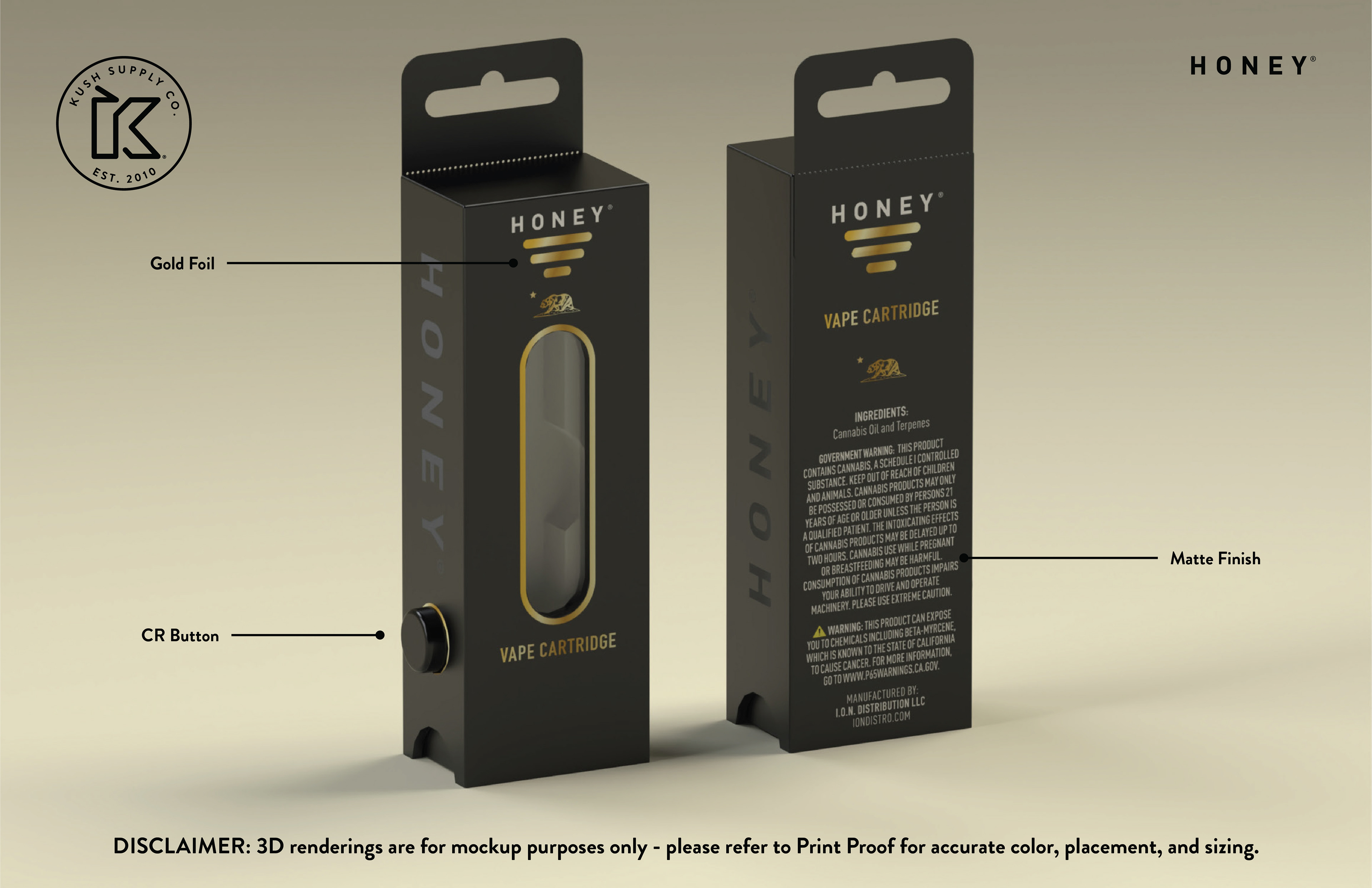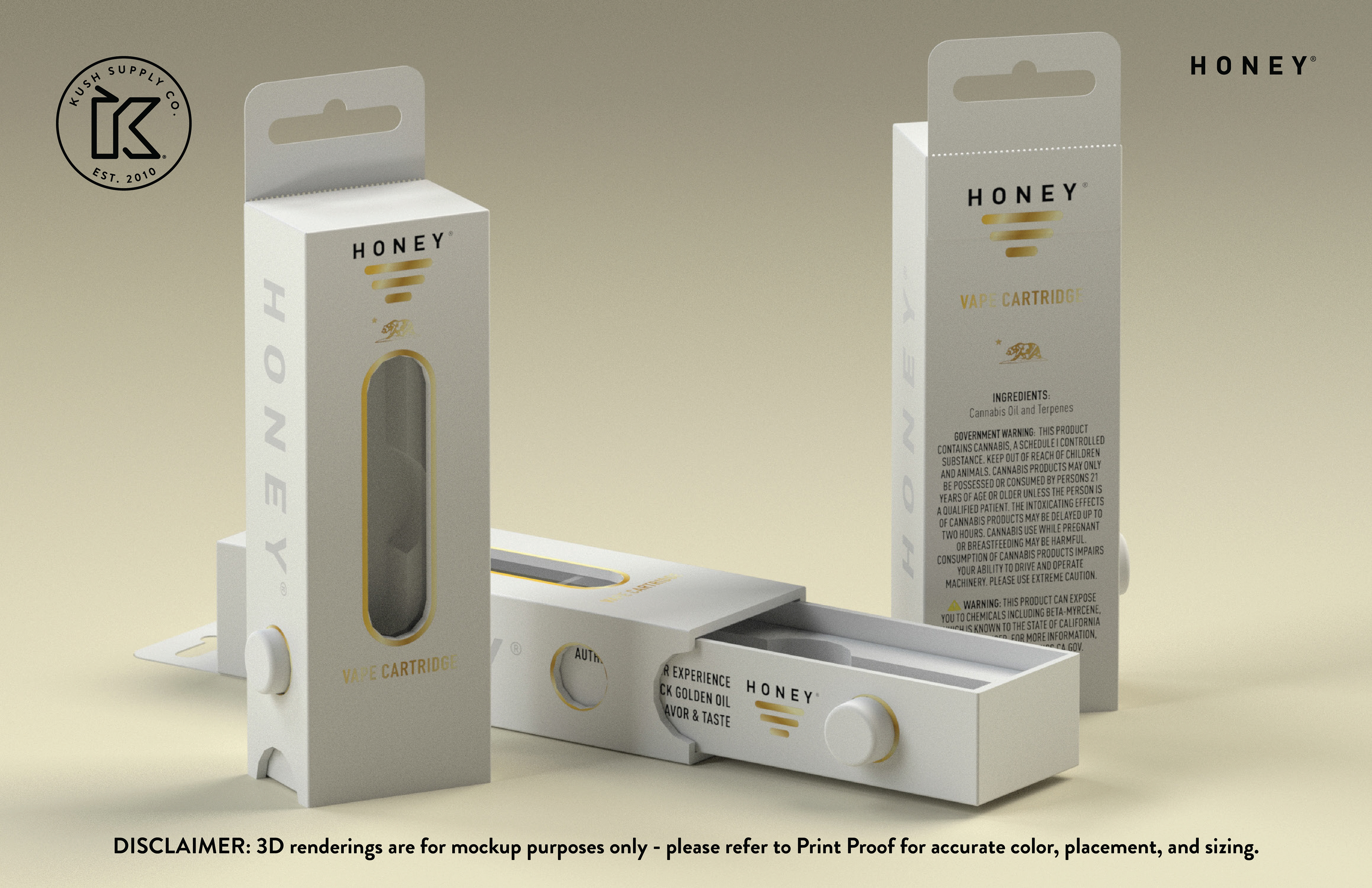 PROJECT: 3D rendering concepts for vape cartridges, child resistant capsule, and retail box